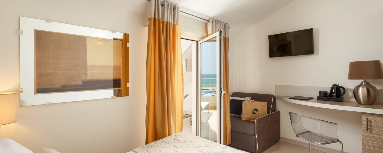 All’Hotel Mariver di Jesolo, il comfort e il relax si fondono con numerose opportunità di divertimento e attività sportive. Scoprite il meglio di Jesolo e dei suoi dintorni, con proposte pensate per rendere il vostro soggiorno unico e completo, tra benessere, sport e divertimento. Camere Fronte Mare all’Hotel Mariver: Vista suggestiva sull’Adriatico a Jesolo. Le camere fronte mare dell’Hotel Mariver offrono emozioni uniche, con una vista spettacolare sull’Adriatico che rende ogni soggiorno speciale. Il nostro hotel è la scelta ideale per ogni tipo di ospite, dalle coppie in cerca di romanticismo alle famiglie, ai gruppi di amici.